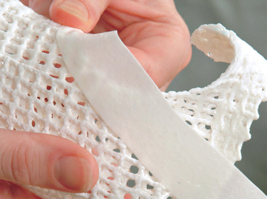 X-LITE® è un materiale aerato e leggero progettato per soddisfare tutte le esigenze di splinting e casting. Il materiale è costituito da una rete di cotone al 100% che è stata impregnata con una resina termoplastica atossica.Tutte le sostanze reattive nel materiale termoplastico sono state trattate, il che significa che non contiene alcun residuo in forma non reattiva. X-LITE® è un materiale NON tossico e non emette sostanze nocive quando riscaldato, lavorato o durante il processo di raffreddamento. Il materiale può essere applicato senza l’uso di guanti e attrezzature speciali di ventilazione, senza cappe aspiranti, e durante la rimozione non viene prodotta alcuna polvere nociva. Lavorare con X-LITE® è per tutti molto più sicuro, comprese donne in gravidanza, pazienti asmatici e persone che soffrono di allergie.